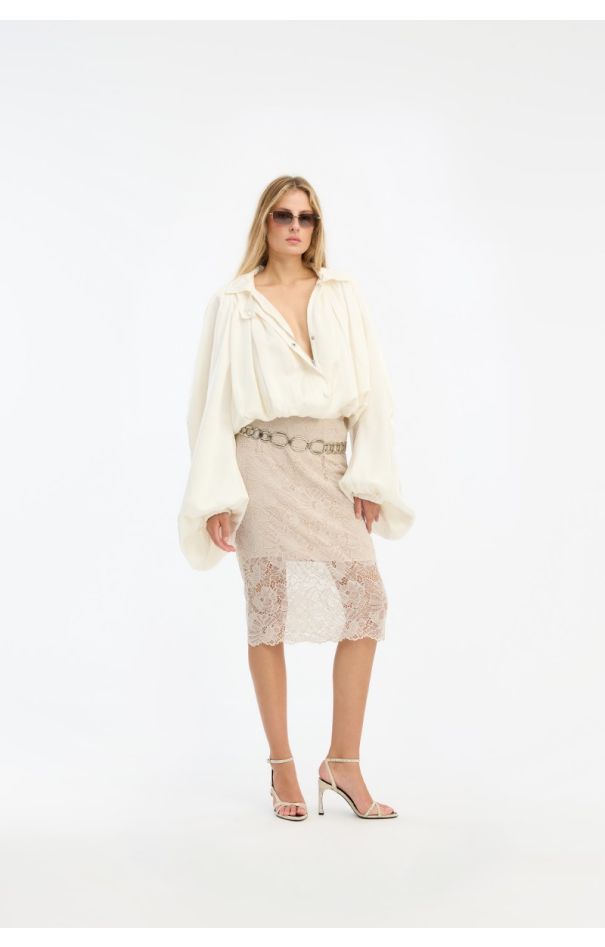 Flower Mesh Pencil Skirt Light Grey