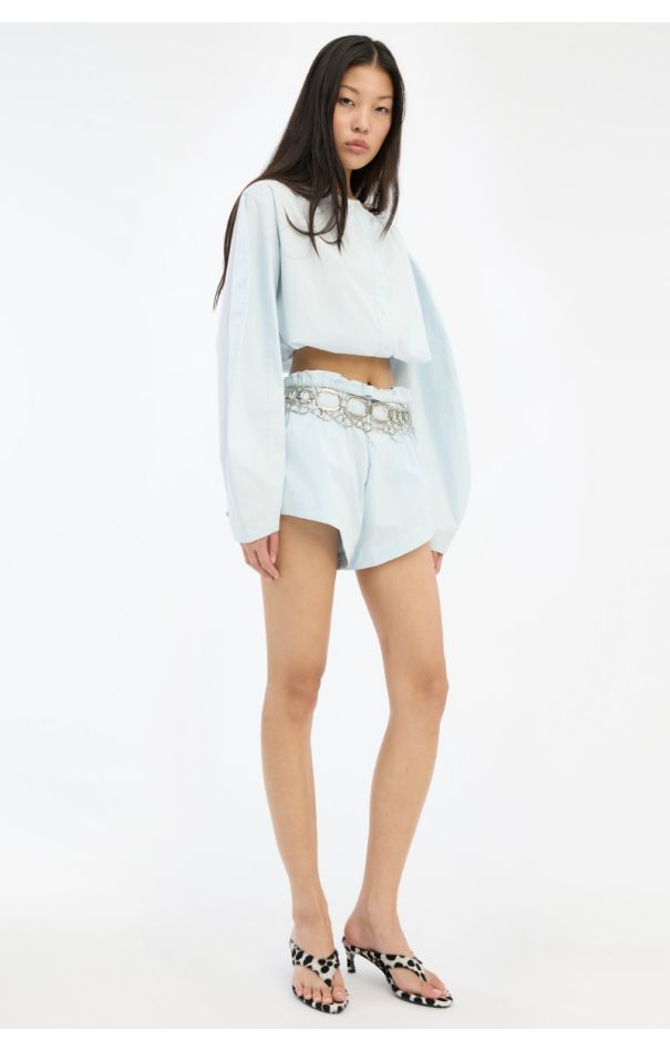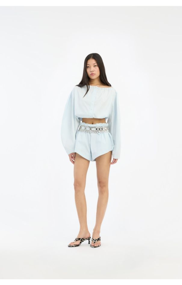 Draped Barrel Leg Jeans Light Blue Denim
