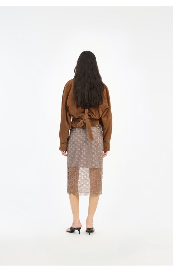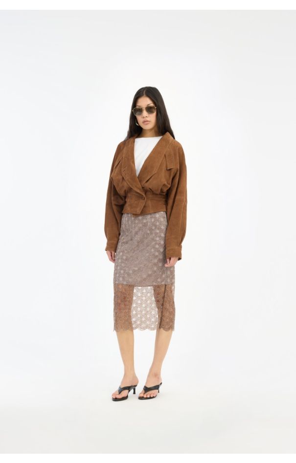 Suede Midi Pencil Skirt Brown